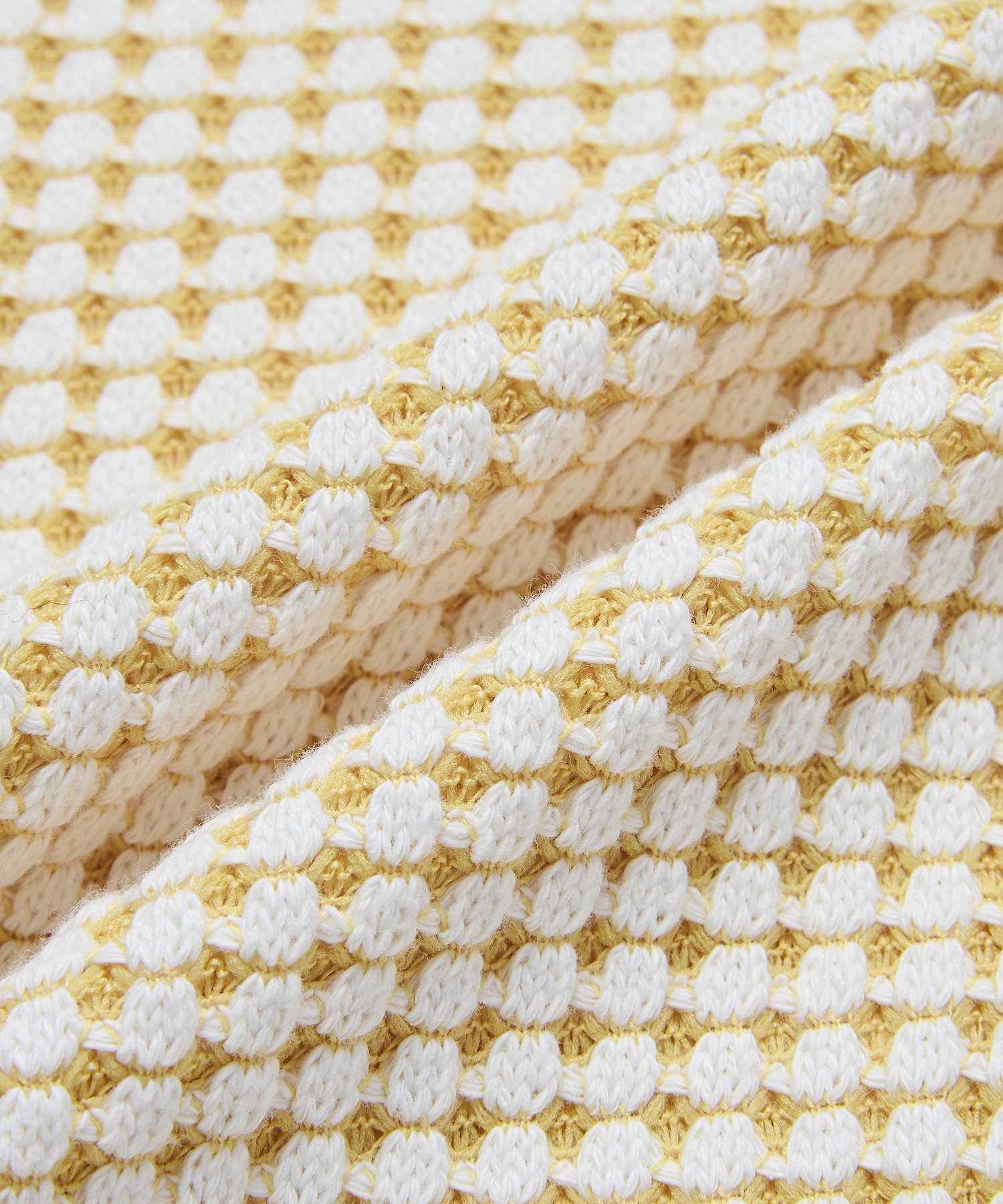 - 表面をコットン、裏面に伸縮性のあるリサイクルポリエステルを使用することで立体的なワッフルの組織感を表現。