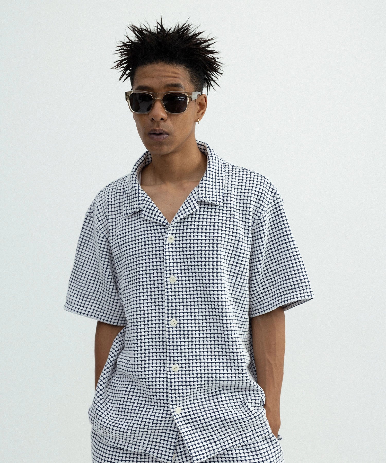 ゆったりとしたシルエットでリラックス感のあるオープンカラーシャツ
