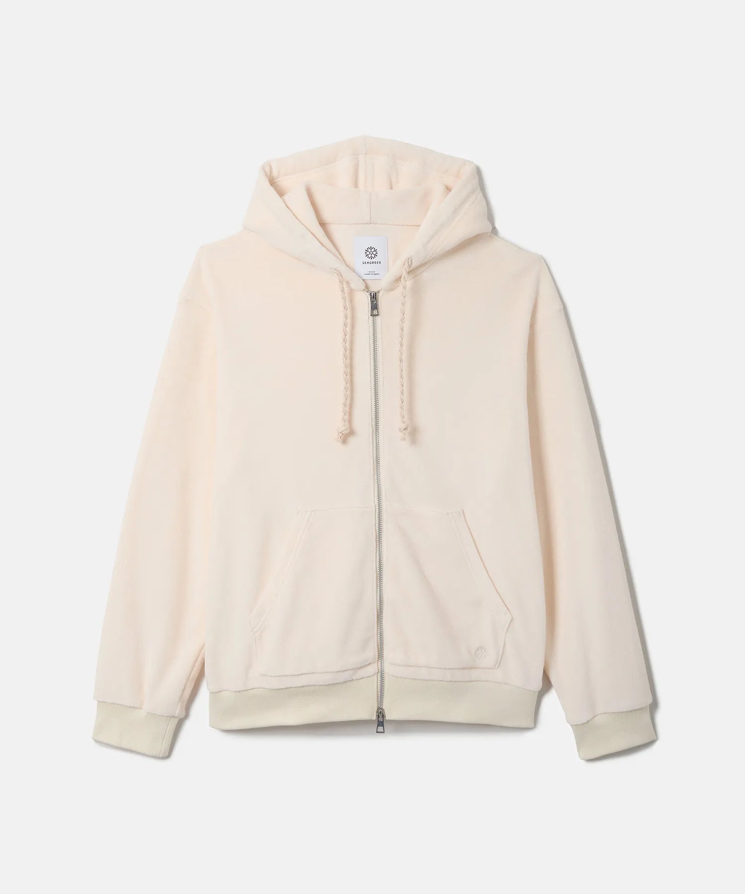 - シンプルながら特注で編んだオリジナルスピンドルがアクセントのジップアップフーディー。