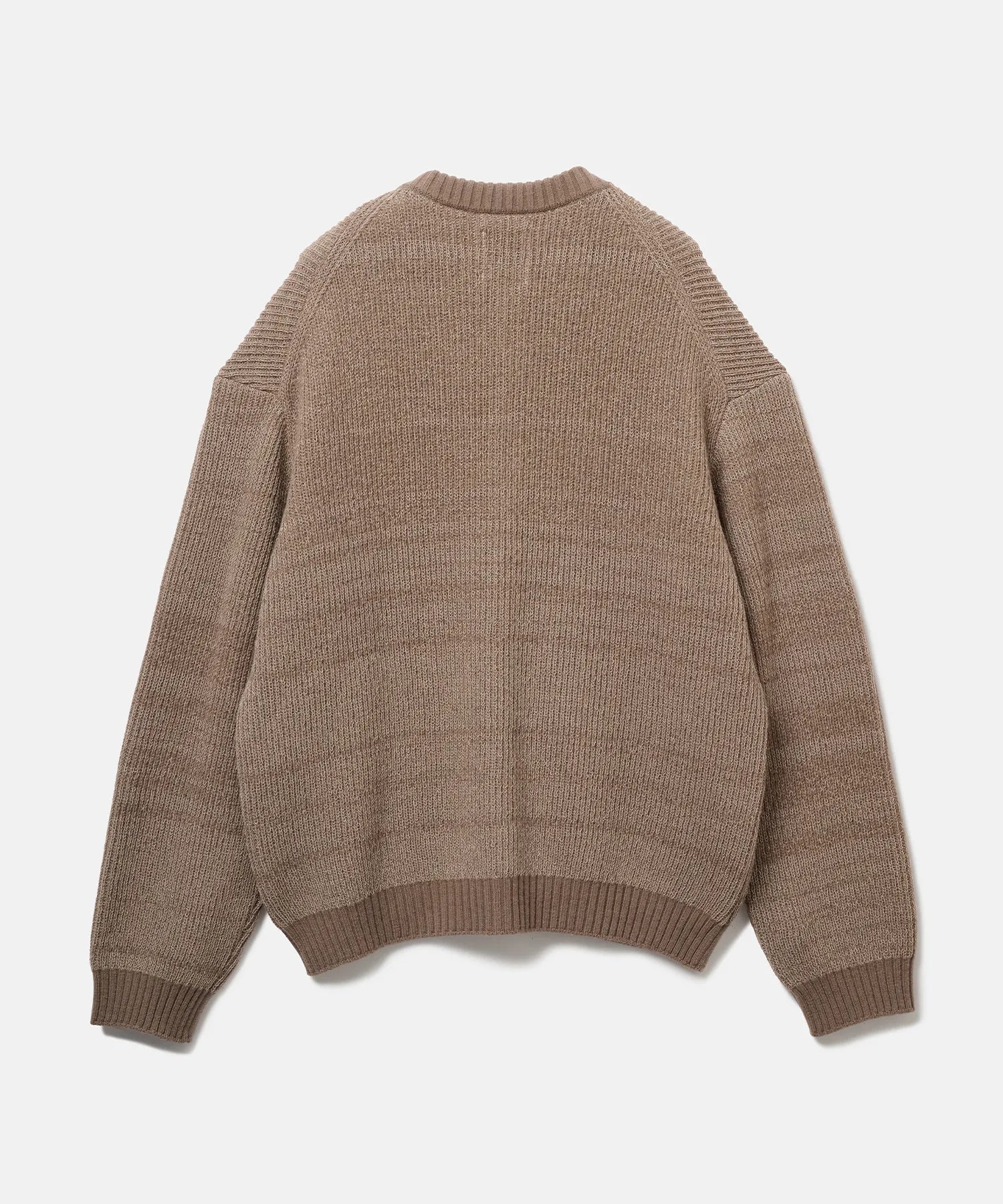 - 襟、前立て、リブ部分はウール糸のみで編み、さりげないデザインアクセントをプラス。