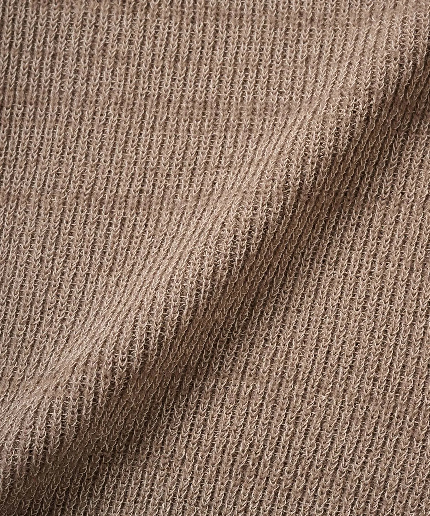 - 和紙混ポリエステル糸との引き揃えで、清涼感と通気性に優れた素材感。独自のAiry SPUN製法により、軽量でサラッとした麻のようなドライタッチを実現。