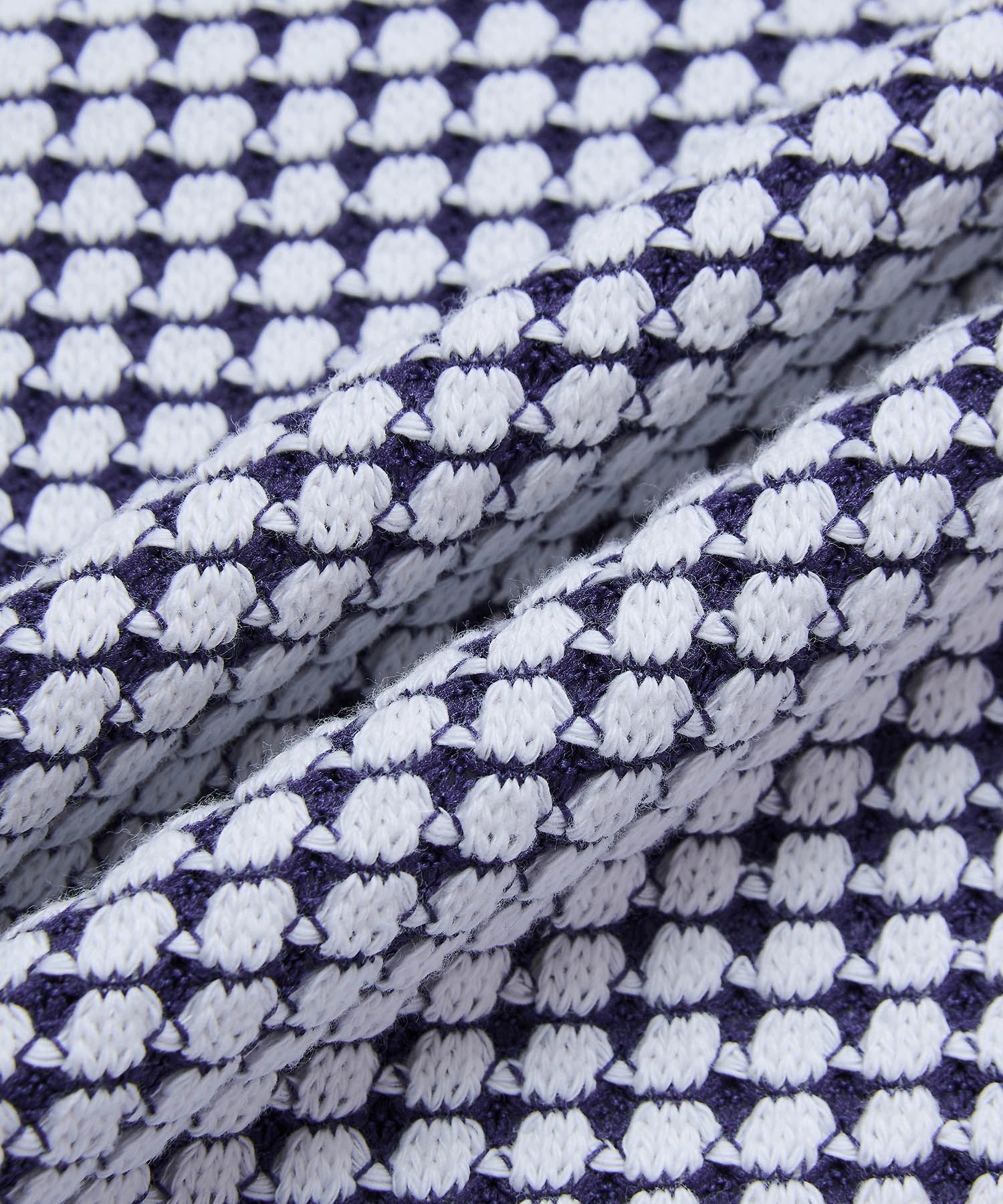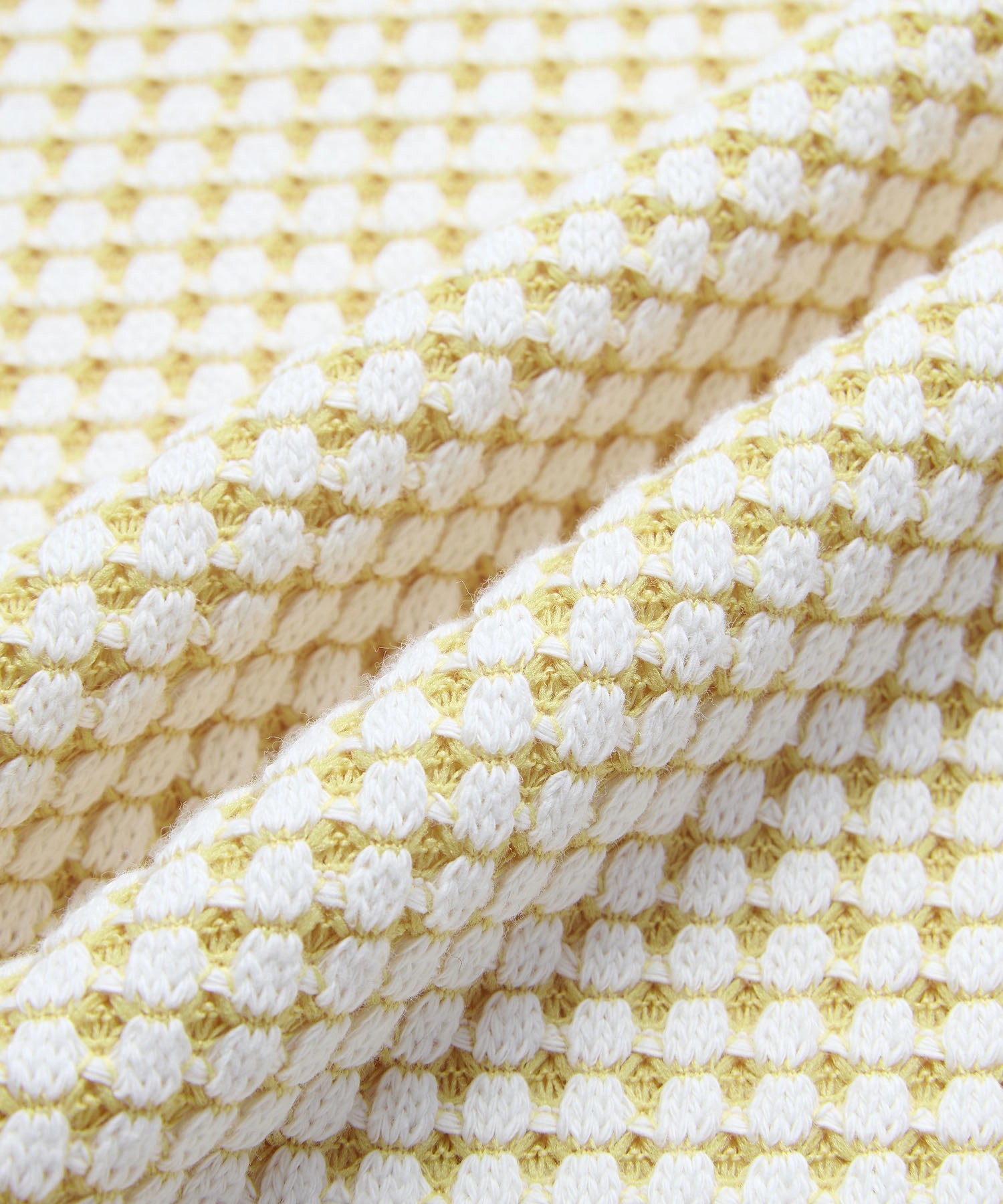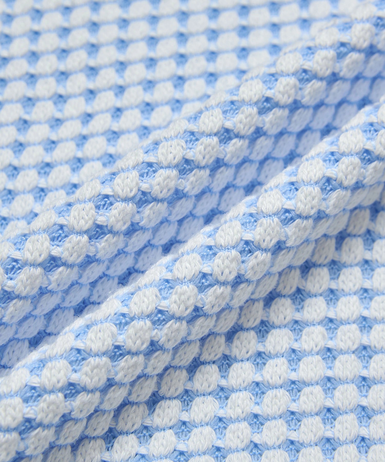 - 表面をコットン、裏面に伸縮性のあるリサイクルポリエステルを使用することで立体的なワッフルの組織感を表現。