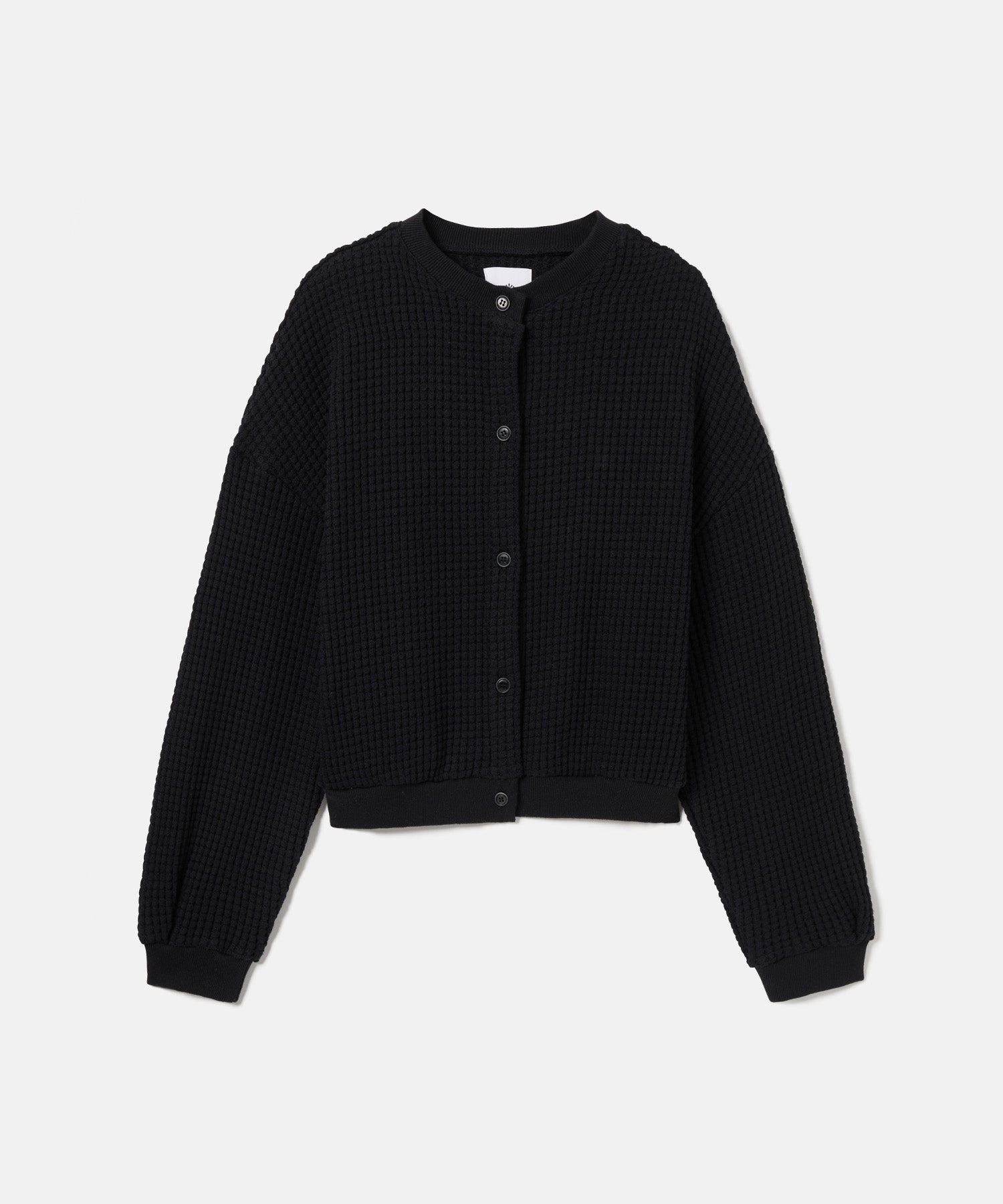 - シーズン継続のノーカラーカーディガンは、すっきりとしたショート丈デザイン。