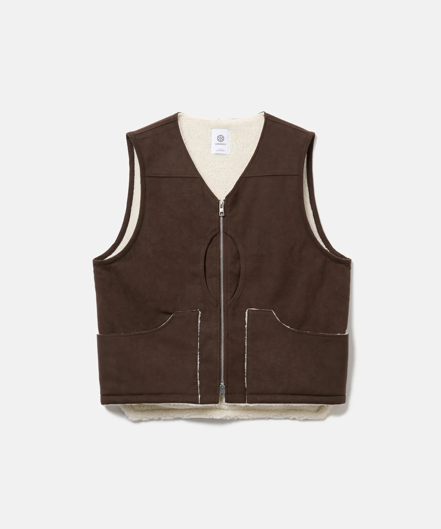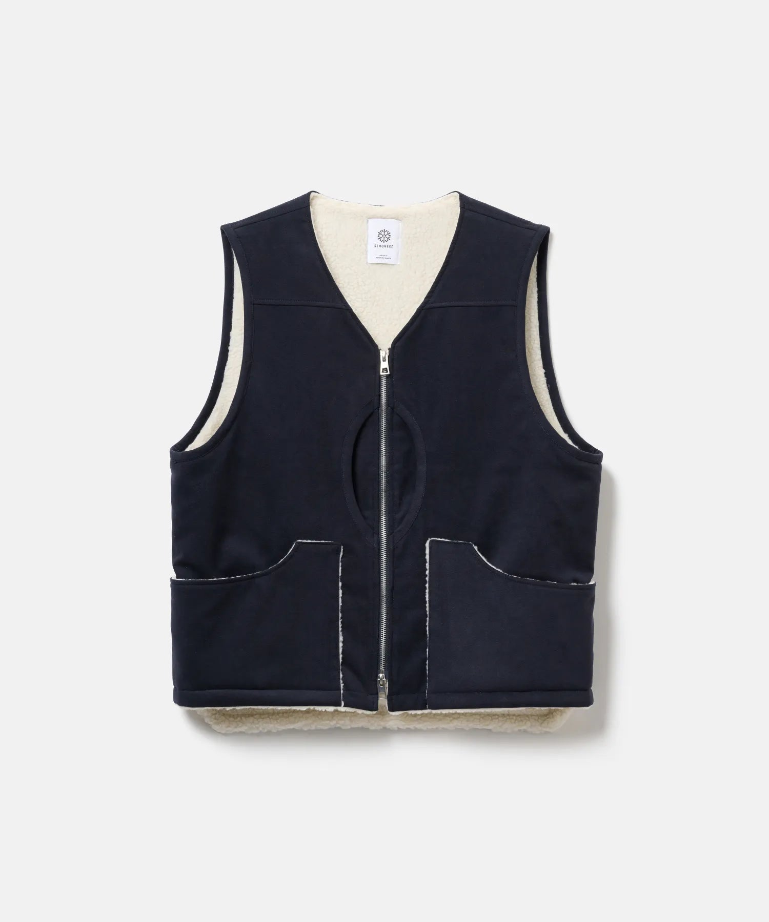 - ハンティングジャケットをベースにしたデザイン性の高いボアベスト。