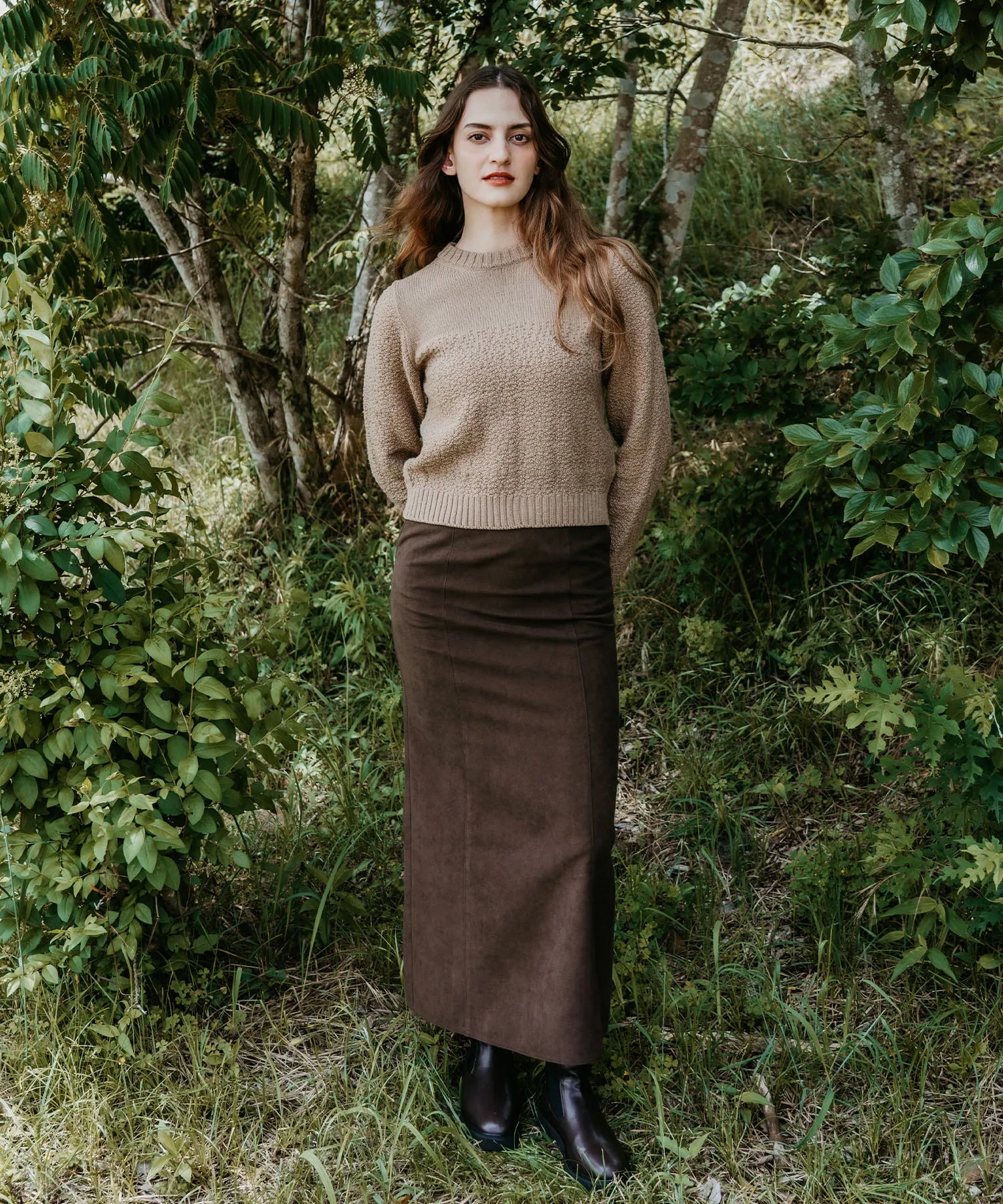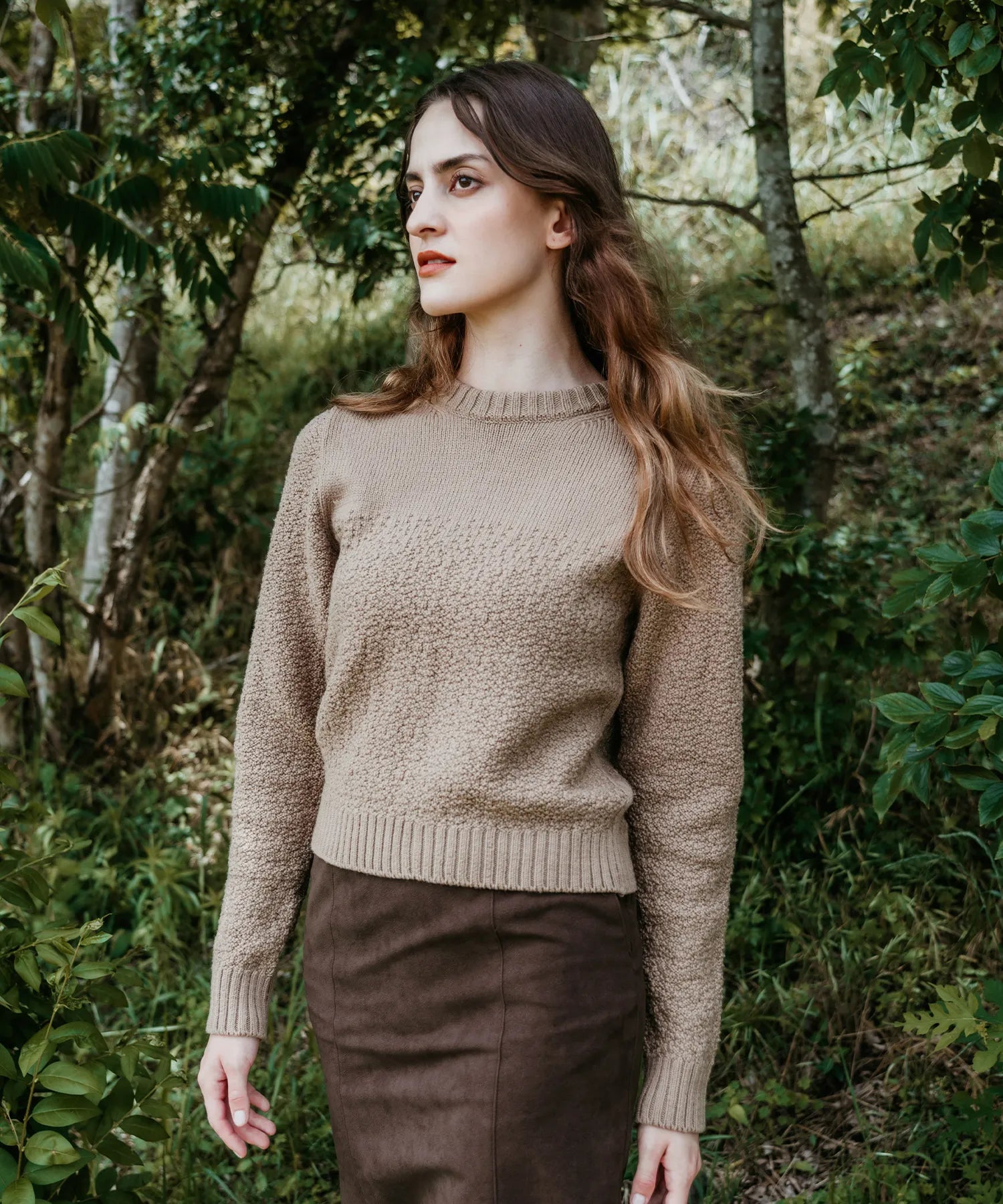 • Es un tejido principal que se ve muy bien por sí solo, lo que lo convierte en una gran pieza para un atuendo de temporada. Un punto de punto hecho de hilo 100% suave, suave, 100% de lana "Rocky Merino", cuidadosamente tejido en una fábrica doméstica.