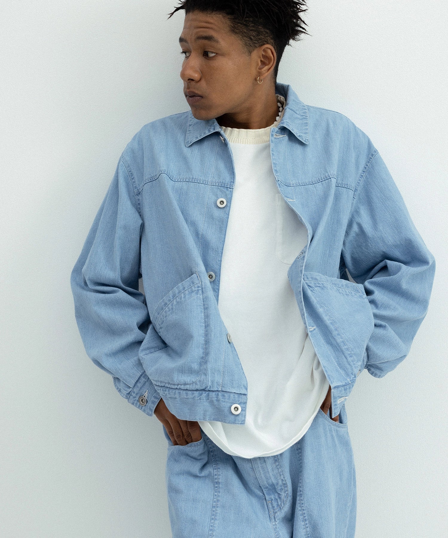 - バイオブリーチ加工を施し、夏らしい明るいカラーとデニム特有の自然なフェード感を実現。